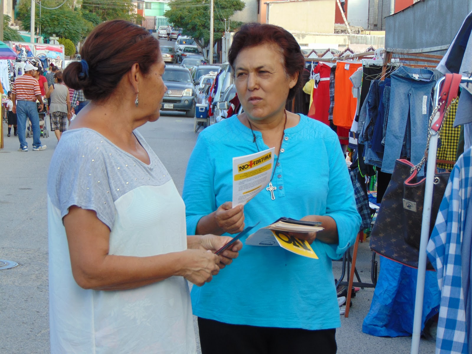 Durante la tarde ayer, integrantes de la Red de Familiares y del Centro de Derechos Humanos Paso del Norte (CDHPN) realizaron un volanteo informativo en el cruce de las calles Toronja Roja y César Canales, con el fin de brindar información sobre las campañas ‘No Más Tortura’ y ‘¿Lo Desaparecieron? ¡Denuncia!’.